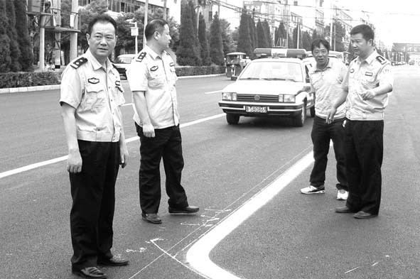 多年来,他坚持带病工作,为了改变道路交通设施落后的面貌,2008年,新上任的张立新(右一)不等不靠,加大对城市“灯线牌”等交通配套设施的建设,安装电子监控系统18处,架设红绿灯灯控系统9处。几年来,电子监控平均每年抓拍违法行为2万余起,极大地震慑了交通违法者。
