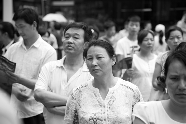 守候在考点外的家长。 (本报记者 王璟天 摄)