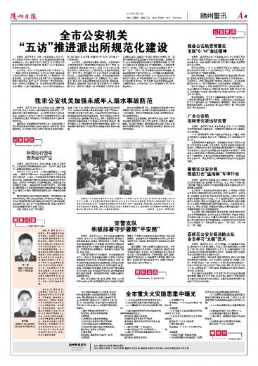 本报讯 通讯员常军、马艳、王晓容报道:6月22日,市公安局召开全市公安机关“五访”推进派出所规范化建设视频会议。会上,解读了全市公安机关“五访”推进公安派出所规范化建设的实施方案,部署了“五访”推进派出所规范化建设工作。 会议指出,“五访”工作法是湖北公安“六张名片”之一,是省公安厅党委贯彻落实“三严三实”精神,推动全省公安机关转作风、接地气、察实情、聚人心、明得失的一项重要举措。这次省厅党委在全省开展“五访”推进派出所规范化建设活动,是对“五访”工作的进一步延伸和深化,是进一步夯实公安基础工作,促进派出所规范化建设落实到“最后一公里”的重要措施。全市公安机关要结合实际,精心组织、扎实开展,把随州公安“五访”工作推上一个新的台阶。 会议要求,一要坚持率先垂范,亲自抓。市局印发的方案对每位领导干部包保联系的派出所进行了明确,市公安局党委、局直各部门负责人、各县、市、区公安(分)局班子成员人人都有任务、人人都有责任。各地各单位要坚持“一把手”带头,率先垂范,将“五访”派出所工作真正落到实处。二要坚持问题导向,主动抓。各级包保联系领导每季度至少深入联系派出所一次,开展暗访、突访、接访、走访、回访工作;要重点围绕派出所所容所貌、值班备勤、服务群众、基础防范、执法办案、警务保障等六个方面开展“五访”,真正深入基层一线,听取基层公安声音,征求人民群众意见,掌握第一手资料,做到心中真有“数”;要善于发现派出所基层基础工作中存在的问题,积极想办法、出点子帮助基层派出所解决实际困难和问题,全力推动公安派出所各项基础业务工作提质增效。三要坚持真抓实干,长效抓。开展“五访”派出所活动是践行“两学一做”、“四不”、“两不一低”等专题教育活动的具体措施,是促进各级领导干部作风更扎实、工作更踏实的重要举措。各地各单位对口联系领导要把“五访”派出所活动与各项教育学习活动、与“平安荆楚使命2016”打击整治行动、打击“盗抢骗”专项行动、“四大竞赛”活动等紧密结合起来,认真抓好落实,以常态化的“五访”促进整体公安工作的推进落实。 |
