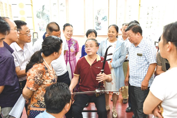 7月7日,市二胡学会、曾都区群艺馆联合开展“群众文化大讲堂”系列活动暨二胡免费培训讲座,旨在传承和弘扬传统文化,丰富群众文化生活。 (本报记者 李文军 通讯员 张红梅 摄)