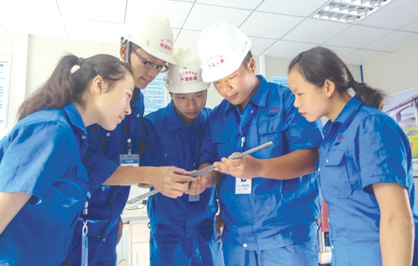 中国铁建汉十铁路随州制梁场对高铁质量建设精益求精。图为质量监管人员对建设钢材进行质量检测。(本报记者 孙洪涛摄)