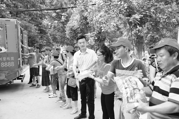 8月2日,市委宣传部、市文明办携手随州碧桂园房地产开发有限公司、市志愿服务联合会以及随州文明网、随州领秀传媒向曾都区洛阳镇捐赠由随州碧桂园提供的价值4万元米面油等食品,帮助洛阳镇居民灾后重建。(本报记者 王 天 通讯员 毛利 摄)