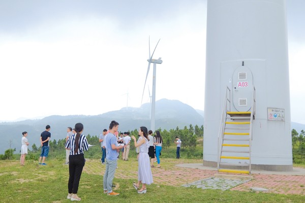 据了解,目前二妹山风电场已经建了70多座风力发电机组,其中50多座已经实现并网发电;单台风车月发电约150小时,发电量22.5万千瓦时,单台年售电收入165万余元。“风力发电不仅带来清洁能源,风车也成为镇里特色旅游项目之一……”草店镇党委副书记金琼介绍。风车如链,串起沿线山川美景,这里既可近观风车,又可远眺群山,令人流连忘返。