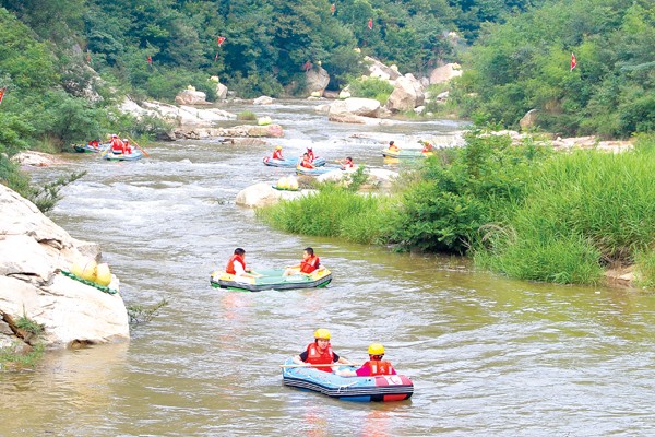 走进该景区,只见景区内停车场车辆爆棚。“当前正是漂流旺季,仅今天上午就迎来上千名漂流游客。近几年,通过漂流还带旺了区域内的乡村游。”该景区相关负责人高兴地对记者说,随着景区内基础设施的完善,现在周边城镇越来越多的人携家带口到景区漂流,不仅给景区带来了经济效益,而且还为周边“农家乐”每年带来了近2000万元的收入。