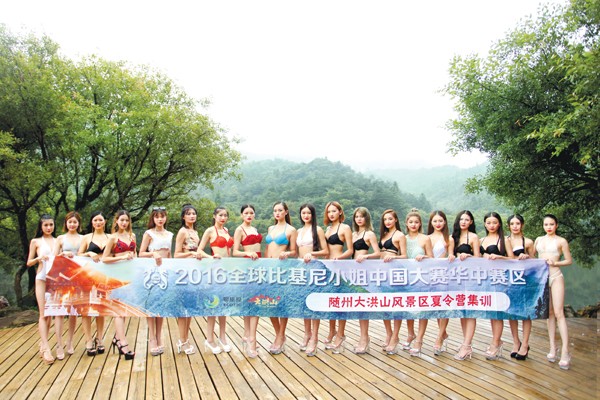 8月8日至12日,2016全球比基尼小组大赛华中赛区20强选手在大洪山风景名胜区开展集训、外拍等活动,给清凉的大洪山带来一道靓丽的风景线。 (本报记者 李文军 特约记者 贺晓利摄)