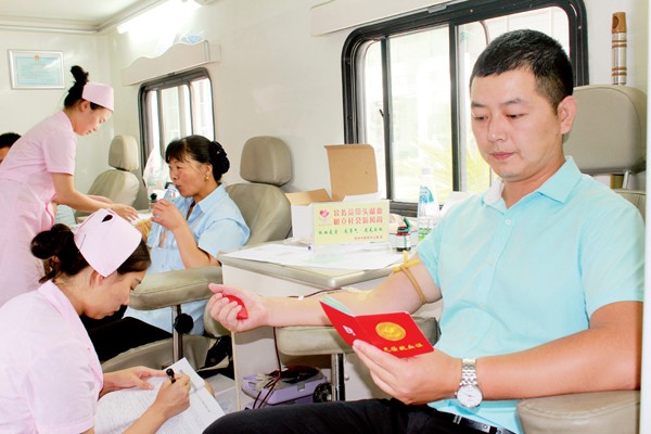 入夏以来,我市进入献血淡季,市献血办启动了市委、市政府各部门及市直单位团体应急无偿献血。图为机关干部踊跃献血。(本报记者 徐斌 通讯员 徐勇 邹美旭摄)