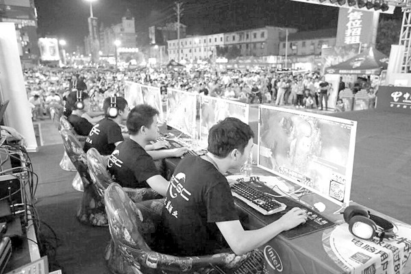 湖北省ECGC电子竞技大赛鄂西北片区总决赛8月25日至26日在随州大润发超市广场举行,随州、孝感、十堰、襄阳市的电子竞技爱好者云集随州展开对决,最终孝感战队夺得片区冠军。 (本报记者 徐斌摄)