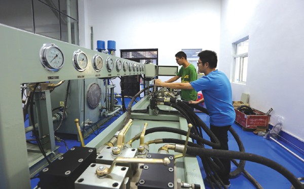 湖北省专汽研究院多路阀液压实验室。 (本报记者 徐斌 摄)