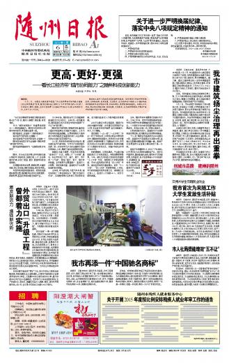 本报记者许享红 张琴 编者按: 9月1日,全国各大媒体集中报道:“长江经济带城市协同能力指数(2016)研究报告”发布,随州在湖北省上榜的12个市州中排名第4位(前3位是武汉、襄
