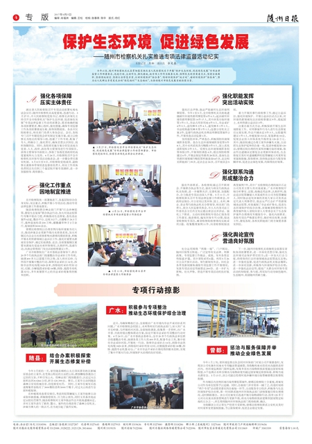 本报记者 王松 通讯员 余文鑫 今年以来,随州市检察机关认真贯彻落实湖北省人民检察院关于开展“保护生态环境、促进绿色发展”专项法律监督工作部署要求,迅速行动,主动作为,强化措施,把专项