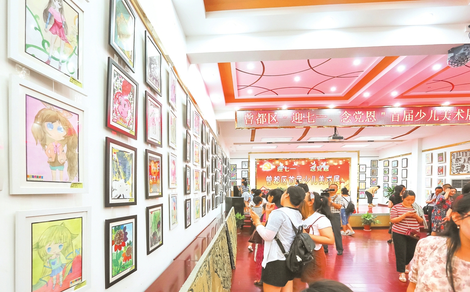 6月30日,曾都区举行“迎七一.念党恩少儿书画展”,纪念中国共产党成立96周年。(本报记者 徐斌摄)