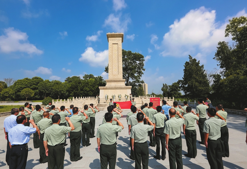 7月4日,随州军分区组织党员干部官兵到革命烈士陵园举行重温入党誓词活动,纪念中国共产党成立96周年。(本报记者 徐斌摄)