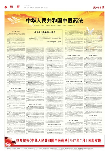 中华人民共和国主席令第五十九号 《中华人民共和国中医药法》已由中华人民共和国第十二届全国人民代表大会常务委员会第二十五次会议于2016年12月25日通过,现予公布,自2017年7月1日