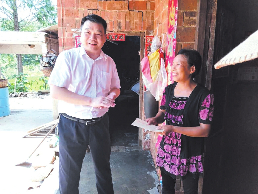 ▲农商行党员干部走访慰问结对帮扶对象