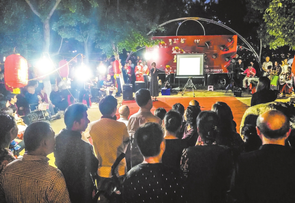 4月29日晚,曾都区西城草店子社区的居民用自编自导的文艺节目欢庆“五一”劳动节。 (本报记者 孙洪涛摄)