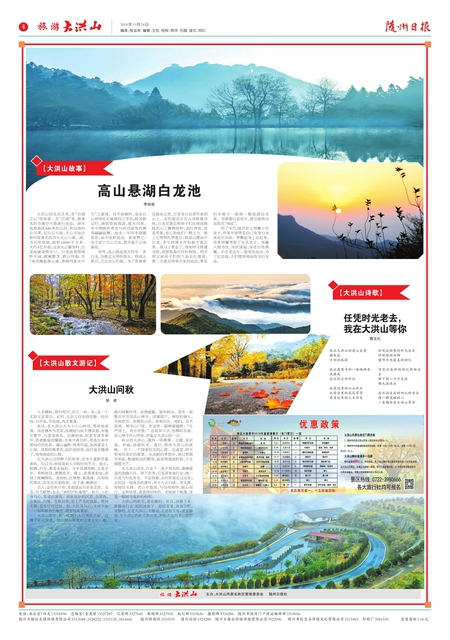 李旭斌 大洪山因水而灵秀,有“百湖之山”的美誉。在“百湖”里,最著名的当属空中悬湖白龙池。湖水高悬海拔840米的山间,和台湾的日月潭、长白山天池、天山天池合称中