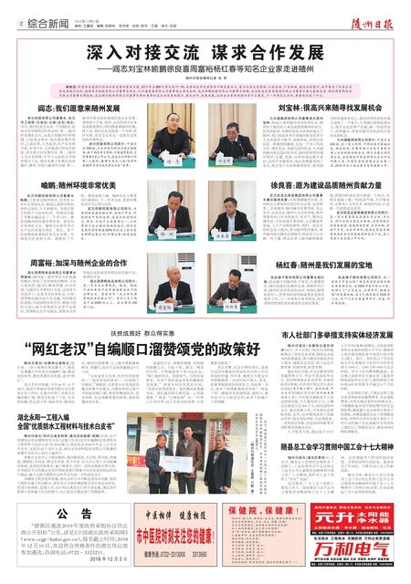 随州日报全媒体记者张琴 编者按:民营经济是随州经济社会发展的重要力量,2017年占GDP比重达到71.9%。为推动我市民营经济不断发展壮大,着力打造生态绿城、文旅名城、产业新城,建设品