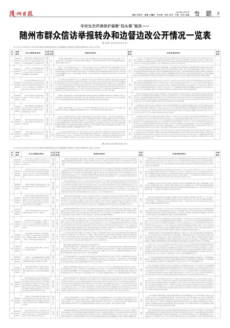 (第24批,2018年12月1日) 注:本次公示内容为中央生态环境保护督察第四组交办问题最新办理情况,前期办理情况见之前公示内容。 随州市随县厉山镇㵐水河私自偷采砂石现象相当严重,河
