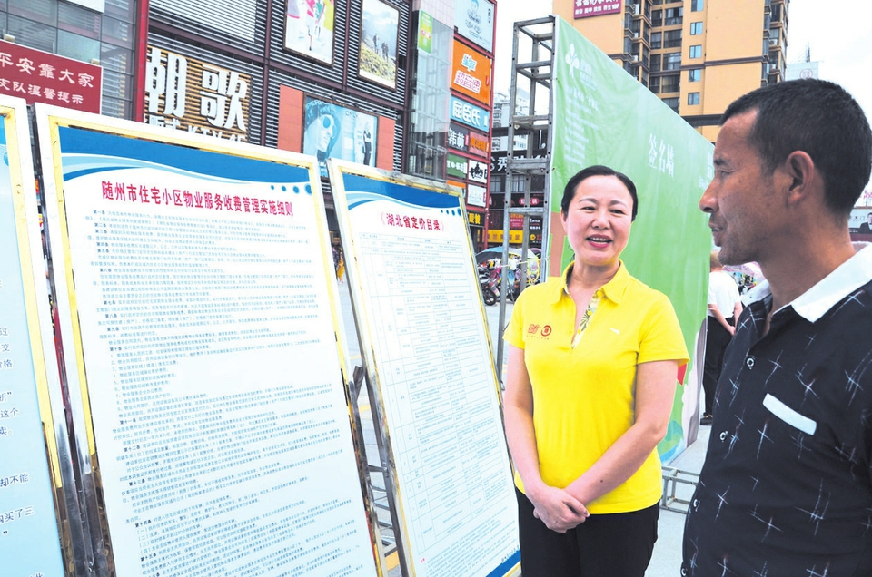 图片4-市物价局局长费巧云为小区住户讲解物业服务收费实施细则