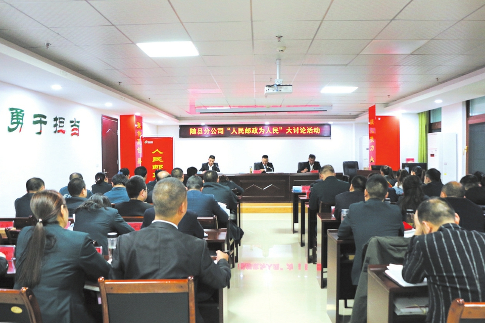 创新方式,学习先进典型。随县邮政创新学习模式,以边疆基层服务者其美多吉先进事迹为启发点,结合自身实际开展了“人民邮政为人民”大讨论活动,大讨论后党委书记以“学思践行人民邮政为人民”为题讲党课,牢固树立“人民邮政为人民”的服务宗旨。同时在随县邮政机关大楼及各支局(所)设置“人民邮政为人民”宣传标语,广泛宣传“人民邮政为人民”的服务宗旨,让邮政服务宗旨内化于心,外化于形。