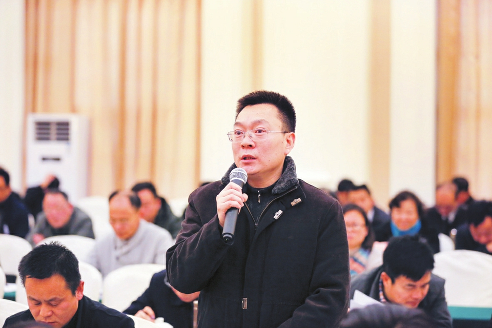 图①杨明委员提出全市要狠抓重大项目落实,同时加大融资力度,推动产业兴市和品质随州建设。图②韩云波代表呼吁加大建设绿色广水的支持力度。图③刘强代表就精准扶贫提出建议和意见。 (随州日报全媒体记者李文军、徐斌摄)