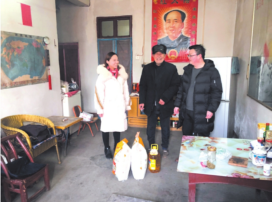 春节来临之际,随县柳林镇卫生院班子成员带上大米、食用油走访慰问该院的退休老职工,希望他们在保重身体的同时,继续关心支持卫生院的工作。(随州日报通讯员 薛 威摄)