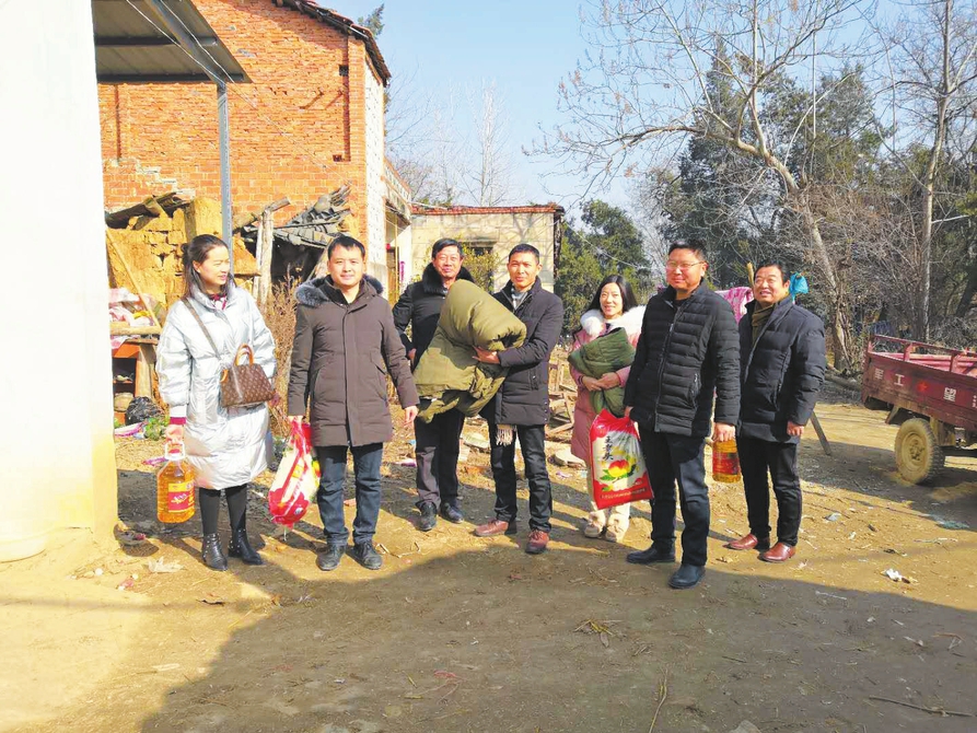 1月22日,随州市房地产业协会组织了宝远、新世纪置业、万基、中驰、安润、程力等会员单位,到曾都区南郊凉亭村开展“春节送温暖”走访慰问活动,为10家贫困户送去现金和大米、食用油等。(通讯员刘克乾摄)