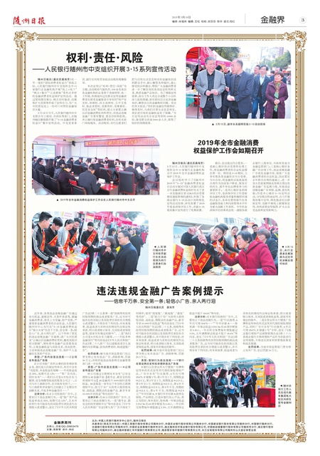 随州日报讯(通讯员龚海芳)在一年一度的“国际消费者权益日”来临之际,人民银行随州市中支组织全市11家银行业金融机构开展“线上+线下”“网点+集中”“五进群体”等形式多样的金融消费者权益保