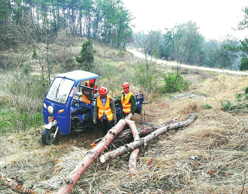 松材线虫病疫情发生后,我市13个乡镇开展疫木清理处置工作,现已接近尾声。图为曾都区南郊南烟墩村请专业人员清理疫木。(随州日报全媒体记者 冯家园摄)