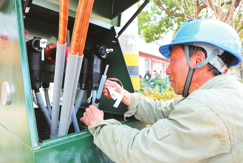 确保城市供电更稳定,助推城市形象更靓丽。3月底,广水市电力线改造工程施工如火如荼,一批电力线将完成入地改造。图为该市供电公司正在进行永阳大道电缆入地改造工程。 (随州日报特约记者夏雨花、通讯员杨雄摄)