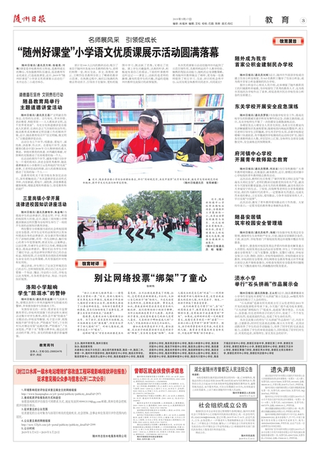 随州日报讯(通讯员方辉、张祖亮、付艳)课堂是学校教育的主阵地,是教师成长的舞台,为加强教师队伍建设,促进教师专业化成长,打造高效课堂,近日,2019年“随州好课堂”小学语文优质课展示活动