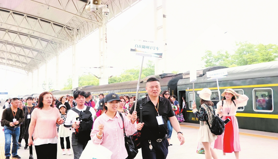 5月20日,市园林部门组织工人分别在火车站广场、高速公路出入口、迎宾大道等城区主要对外窗口布置花卉和绿植景观,为寻根节营造浓厚节日氛围。(随州日报全媒记者 李文军摄) 5月18日,武汉随州旅游专列开通。图为抵达随州站的500多名武汉游客,开启两日的“军运同行,华夏寻根”随州文明之旅。(随州日报全媒记者 冯家园摄)