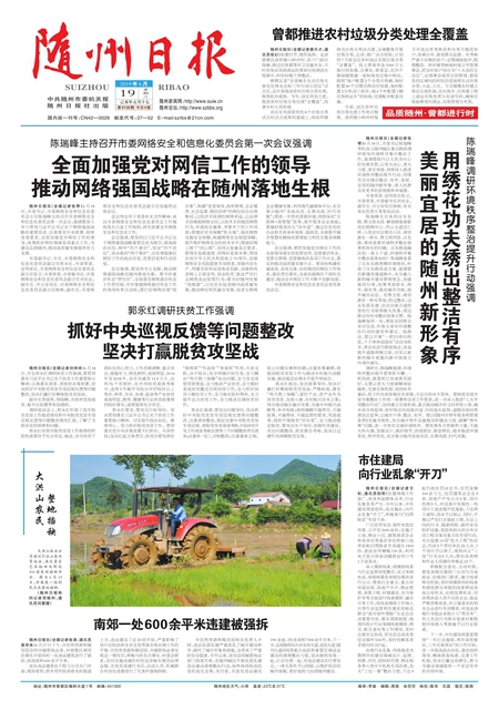 随州日报讯(全媒记者张琴)6月18日,市委书记、市委网络安全和信息化委员会主任陈瑞峰主持召开市委网络安全和信息化委员会第一次会议,强调要深入学习贯彻习近平总书记关于网络强国战略的重要论述