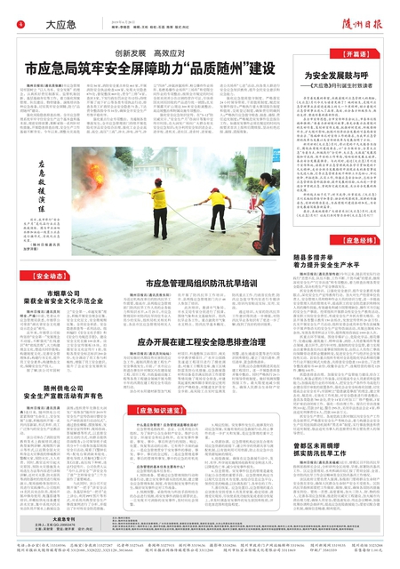 随州日报讯(通讯员张鹏)市应急管理局牢固树立“以人为本、安全发展”的理念,认真抓好责任制落实、监管机制创新、基层基础夯实等工作,着力强化预案管理、队伍建设、物资储备、演练培训各种应急准备