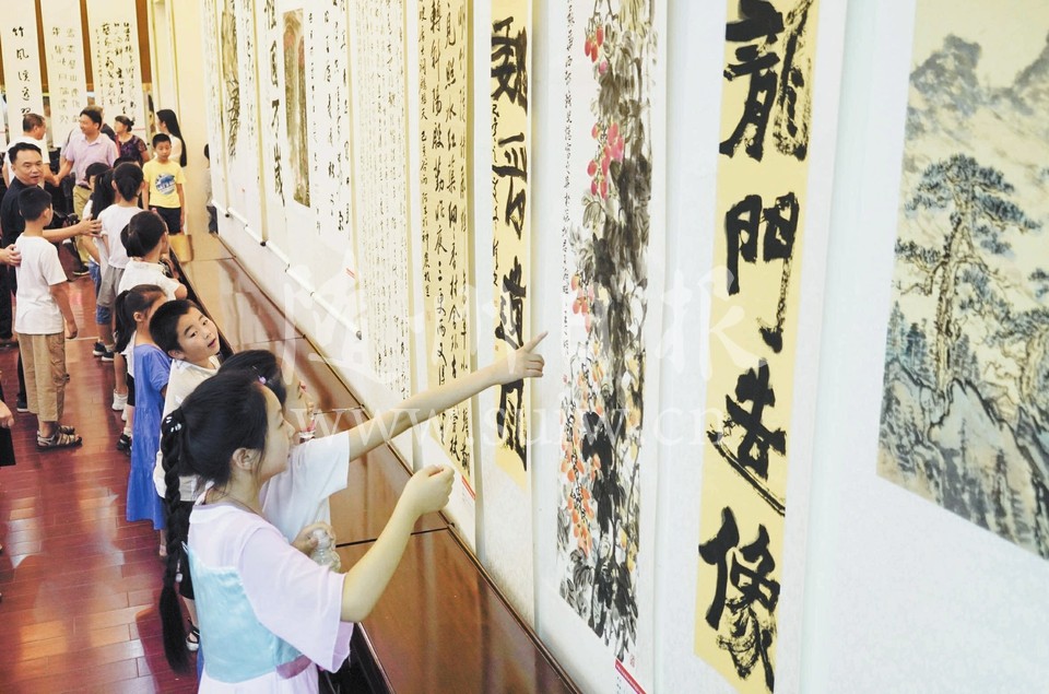 曾都区庆祝建党98周年书画展日前开展,吸引了我市众多的书画爱好者前往观展。展出的近百幅书画作品,内容丰富,形式多样,热情讴歌了中国共产党的丰功伟绩。(随州日报全媒记者 孙洪涛摄)
