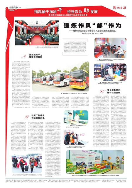 随州日报全媒记者 王松 通讯员 胡晓丹 “干部作风决定事业成败,有好的作风才能打开发展新局面。”这是中国邮政集团公司随州市分公司党委书记、总经理阳海龙经常挂在嘴边的一句话。在此思想指引