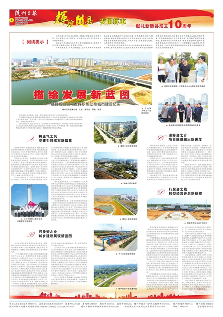 随州日报全媒记者 王松 通讯员 邓强 陈旻 时光荏苒,岁月如梭。弹指一挥间,随县已经走过了10年的风雨历程。 作为随县的投资主体、融资载体和建设实体,十年的光阴,随县城投公司蹄疾而步