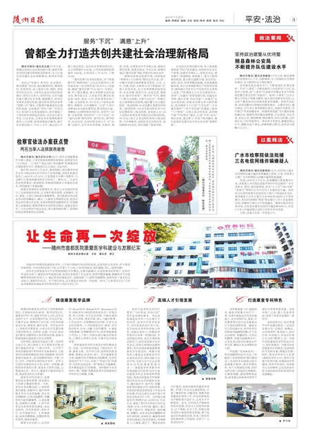 随州日报讯(通讯员汪鑫)今年以来,曾都区坚持社会治理创新引领,提档升级治安防控建设和网格巡防体系,全力打造共创共建社会治理新格局,取得系列成效。 该区以“发案少、秩序好、社会稳定、群众