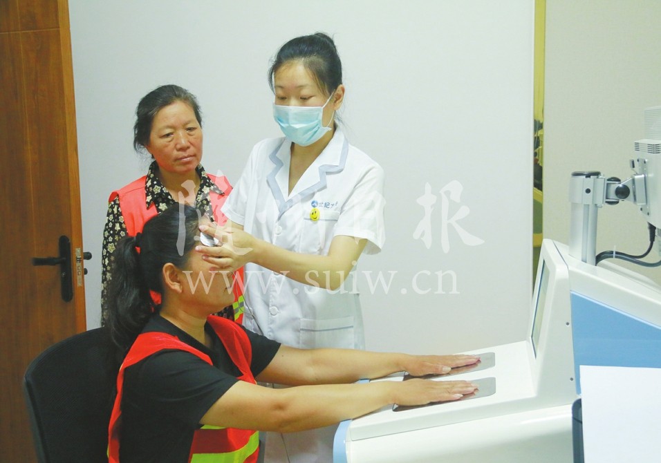 7月18日,我市环卫部门联合世纪方舟健康管理中心为50名环卫工人免费体检。爱心机构还将开出体检大巴车,为其他因工作未能到场的环卫工人上门体检。(随州日报全媒记者王璟天、实习生田亚萍摄)