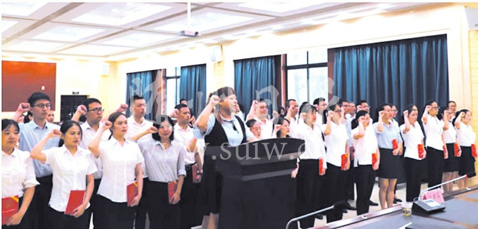 8月15日,曾都区新录用的6名选调生、23名公务员在接受集体谈话后向宪法进行宣誓。(随州日报通讯员 孙 强摄)
