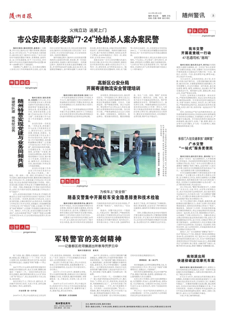 随州日报讯(通讯员常军、姜育庆)二伏酷暑,烈日当空,随州公安干警不畏艰难、缜密侦查,36小时火线立功。“7·24”抢劫杀人案侦破后,湖北省公安厅、随州市公安局、广水市公安局对专案组民警奋