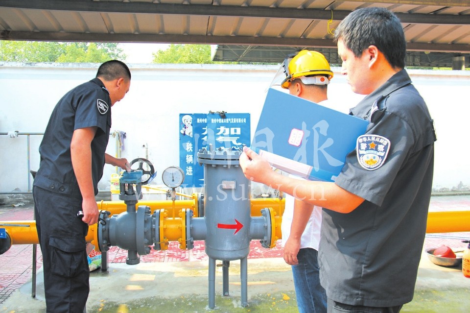 为全力做好新中国成立70周年大庆安保维稳工作,市公安局特警支队组织民警深入包保企业—随州中燃公司开展安全大检查,认真排查治安隐患。图为9月6日,民警正在开展安全检查。 (随州日报通讯员 刘智明 刘朝辉摄)