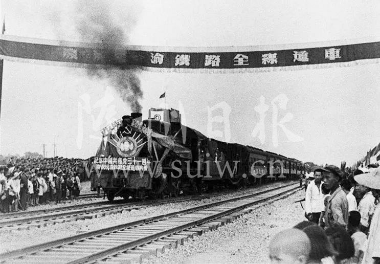 1952年7月1日,成渝铁路全线通车。这是由成都驶往重庆的第一列火车出站。