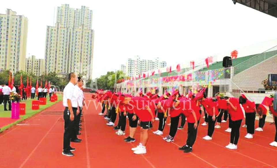 9月16日,曾都一中在朝阳运动场隆重举行主题为“责任勇担当青春绽光芒”的十八岁成人礼宣誓仪式,学校党委委员、高三全体老师、高三年级1100多名学生及家长参加宣誓仪式,共同见证了成人礼庄严的时刻。(随州日报通讯员 创 建摄)