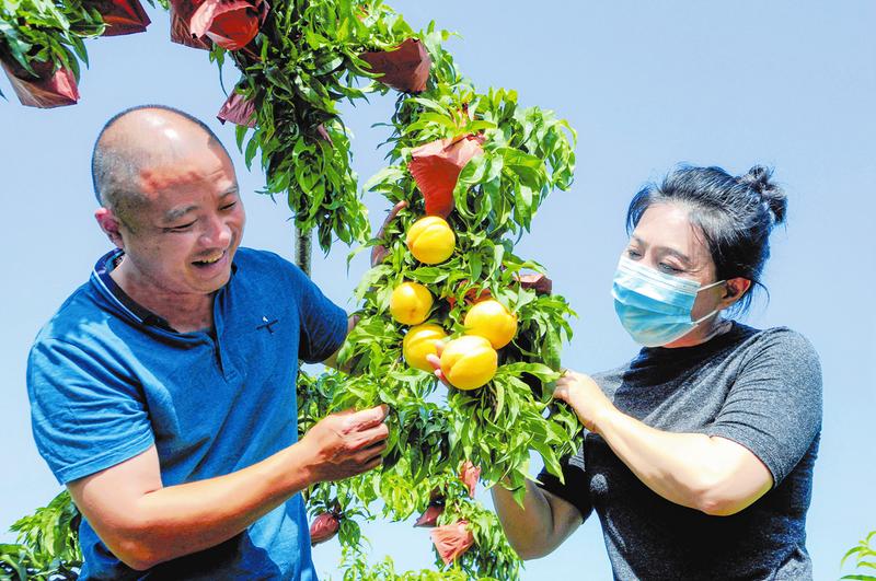 随县厉山镇灯塔社区优良品种黄桃采用农家肥种植,果形正圆、色彩金黄、脆甜爽口,深受消费者青睐。今年该村动员在家乡和外地村民发布网售和抖音带货,网上订单热销十余个省市。