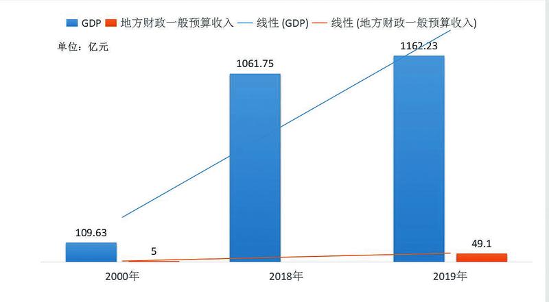 地级随州市成立之初,经济总量(GDP)只有109.63亿元,刚刚迈入“百亿元俱乐部”,到2018年达到1061.75亿元,正式跨入“千亿元俱乐部”。2019年我市实现地区生产总值1162.23亿元,相当于2000年的10.6倍。蛋糕做大了,分到每个市民的蛋糕份量自然更多了。2000年我市人均GDP为5281元,属于低收入水平;到2019年人均GDP达到52380元,是2000年的11.9倍,已经进入中上等收入水平。经济总量的攀升带动地方财政实力不断增强。2019年,全市实现地方财政一般预算收入49.1亿元,是2000年5亿元的9.8倍,年均增长12.8%。不断增强的财政实力,有力支撑了全市经济和社会各项事业的发展。