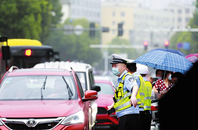 家长穿着旗袍为孩子高考加油寓意“旗开得胜”