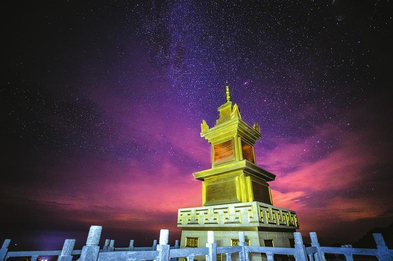 在状元台星空,观星河是很幸运的事情。状元台作为大洪山最佳观星点,吸引了无数的摄影爱好者,饱览绚丽的星河美景。这里视野开阔,核心景区内多数景点可一览无余。尤其是在这里眺望与之遥相对应的宝珠峰,古色古香的唐宋风格寺院建筑群尽收眼底,犹如欣赏一幅巨大的山水画卷,气势巍峨。
