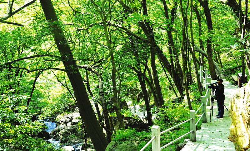 “苍松翠柏长生地,绿水青山古洞天。”隐匿于宝珠峰旁的白龙池,海拔840米,犹如一面碧绿的明镜悬挂于山峦之间。这里一面是蓝蓝的湖水,一面是碧绿的丛林和栈道。阳光照耀下,树影婆娑,在漫步中,寻找光影中的你。