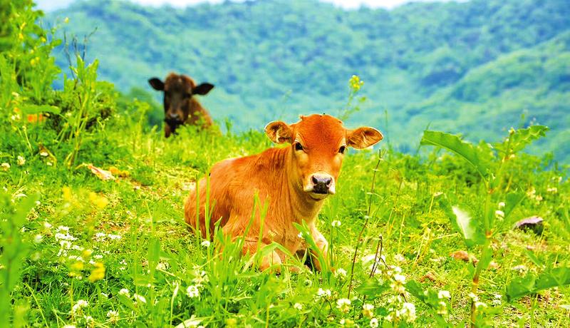 大洪山自在牛,一年只回一次家,自由自在地喝山泉水,吃山坡草甸的青草。更有趣的是,这些牛因常年徜徉于景区各大景点,还常常于游客进行“互动”:它们可悠然卧于路中,不理你的鸣笛声。也可以睁开大大的牛眼,看稀奇似的瞪着你;还可以贴身而近,感受彼此的感觉……大洪山自在牛,就一个“牛”字。